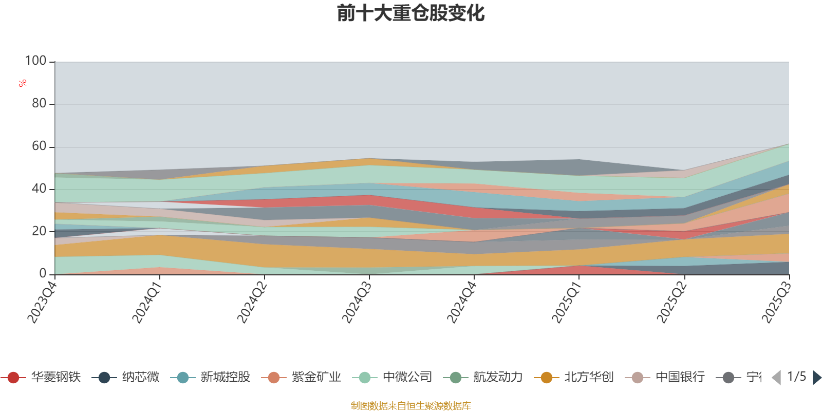 截至2025年三季度末,基金十大重仓股分别是北方华创、寒武纪、中芯国际、海光信息、芯原股份、纳芯微、中科飞测、澜起科技、紫金矿业、宁德时代。