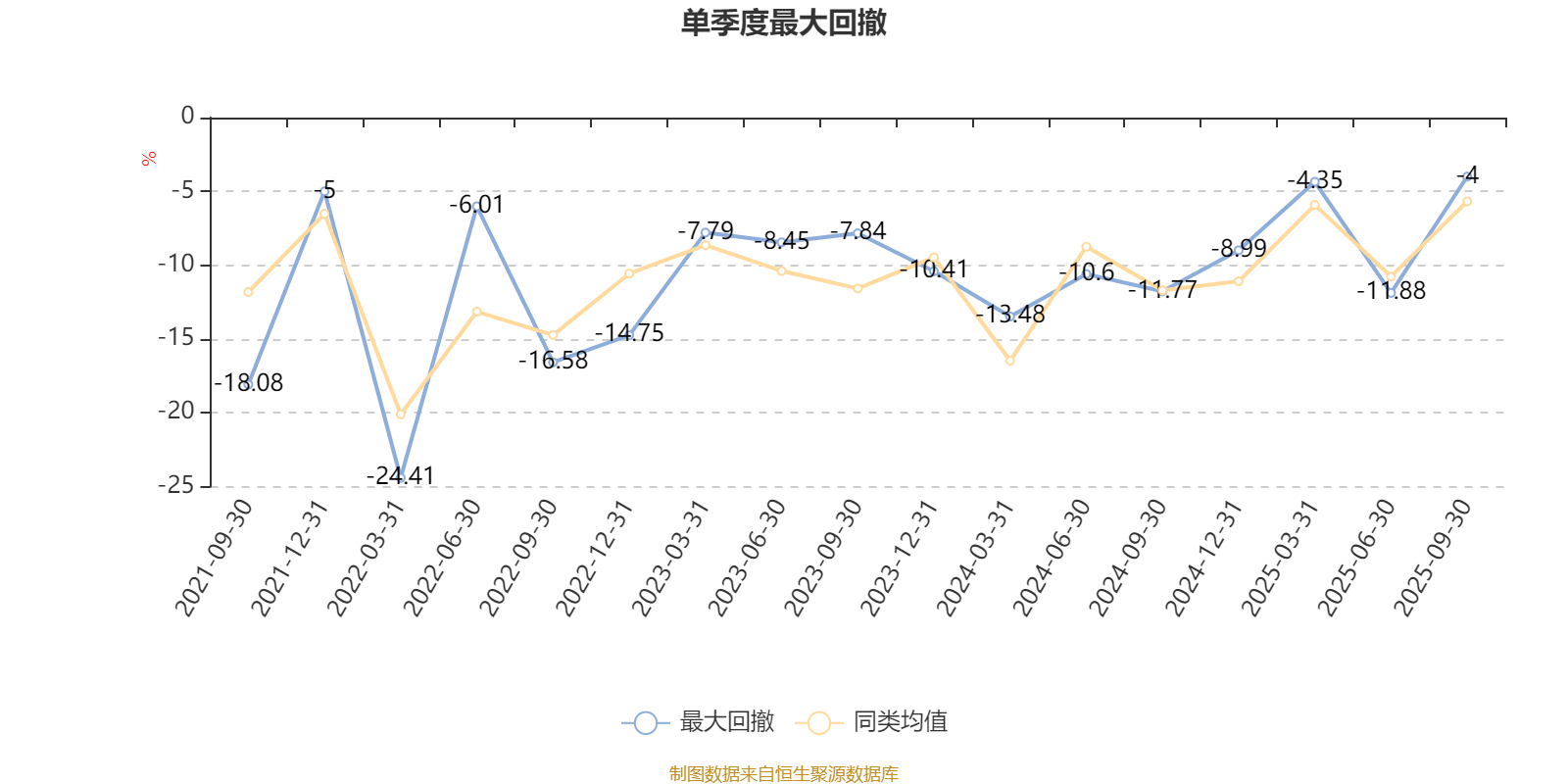 截至10月28日,基金近三年最大回撤为30.3%,同类可比基金排名132/513。单季度最大回撤出现在2022年一季度,为24.41%。
