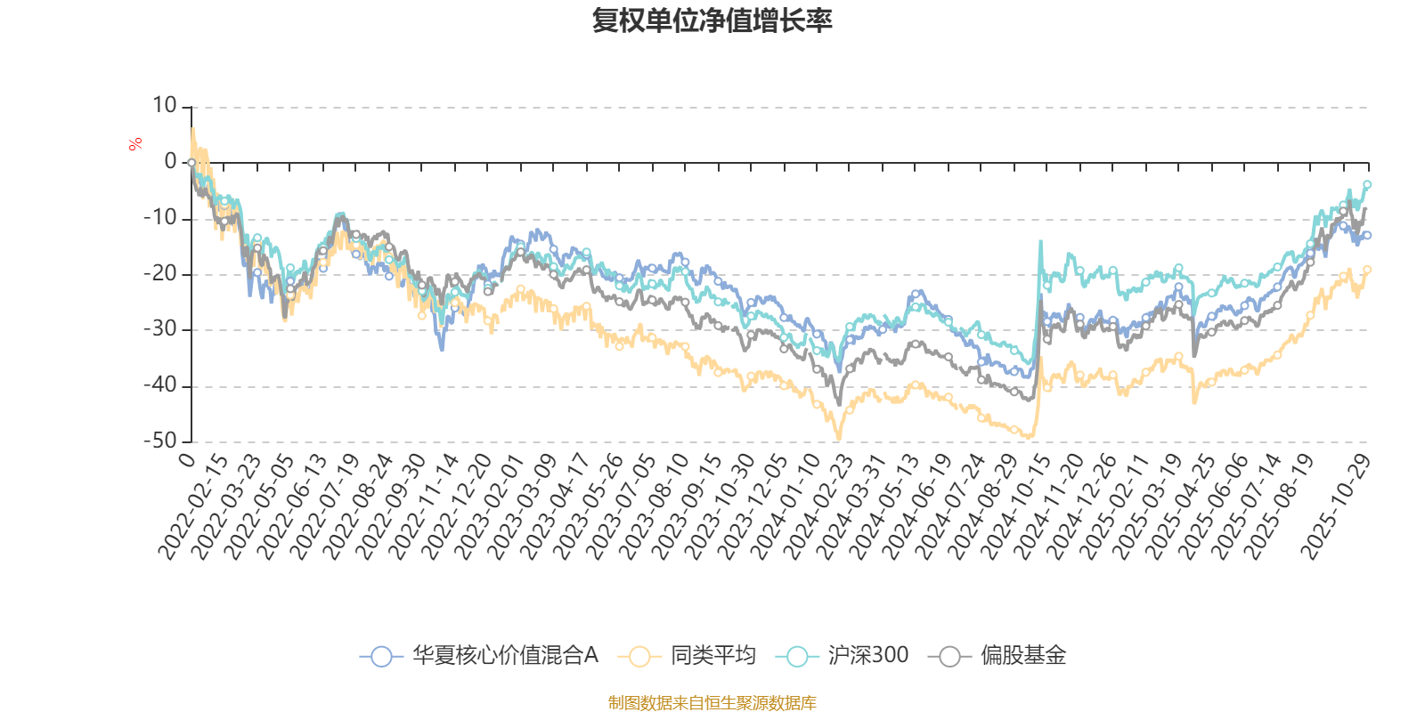截至10月29日,华夏核心价值混合A近三个月复权单位净值增长率为7.13%,位于同类可比基金490/621;近半年复权单位净值增长率为20.54%,位于同类可比基金475/621;近一年复权单位净值增长率为20.14%,位于同类可比基金443/611;近三年复权单位净值增长率为29.98%,位于同类可比基金186/518。
