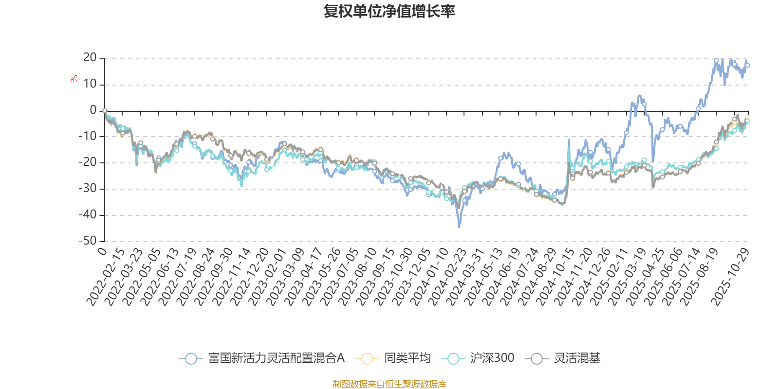截至10月29日,富国新活力灵活配置混合A近三个月复权单位净值增长率为10.52%,位于同类可比基金718/1287;近半年复权单位净值增长率为26.79%,位于同类可比基金593/1287;近一年复权单位净值增长率为41.02%,位于同类可比基金272/1287;近三年复权单位净值增长率为58.53%,位于同类可比基金112/1286。