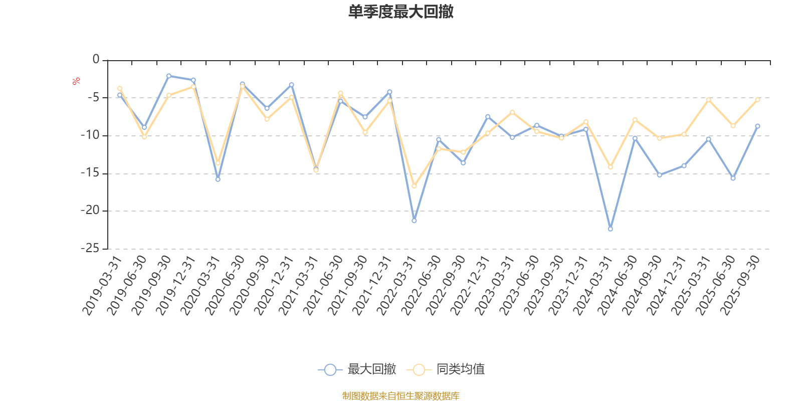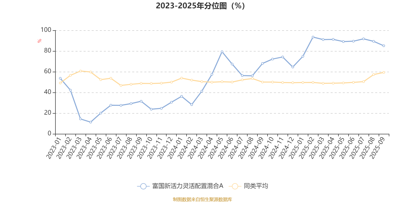 通过所选区间该基金净值增长率分位图,可以观察该基金与同类基金业绩比较情况。图为坐标原点到区间内某时点的净值增长率在同类基金中的分位数。
