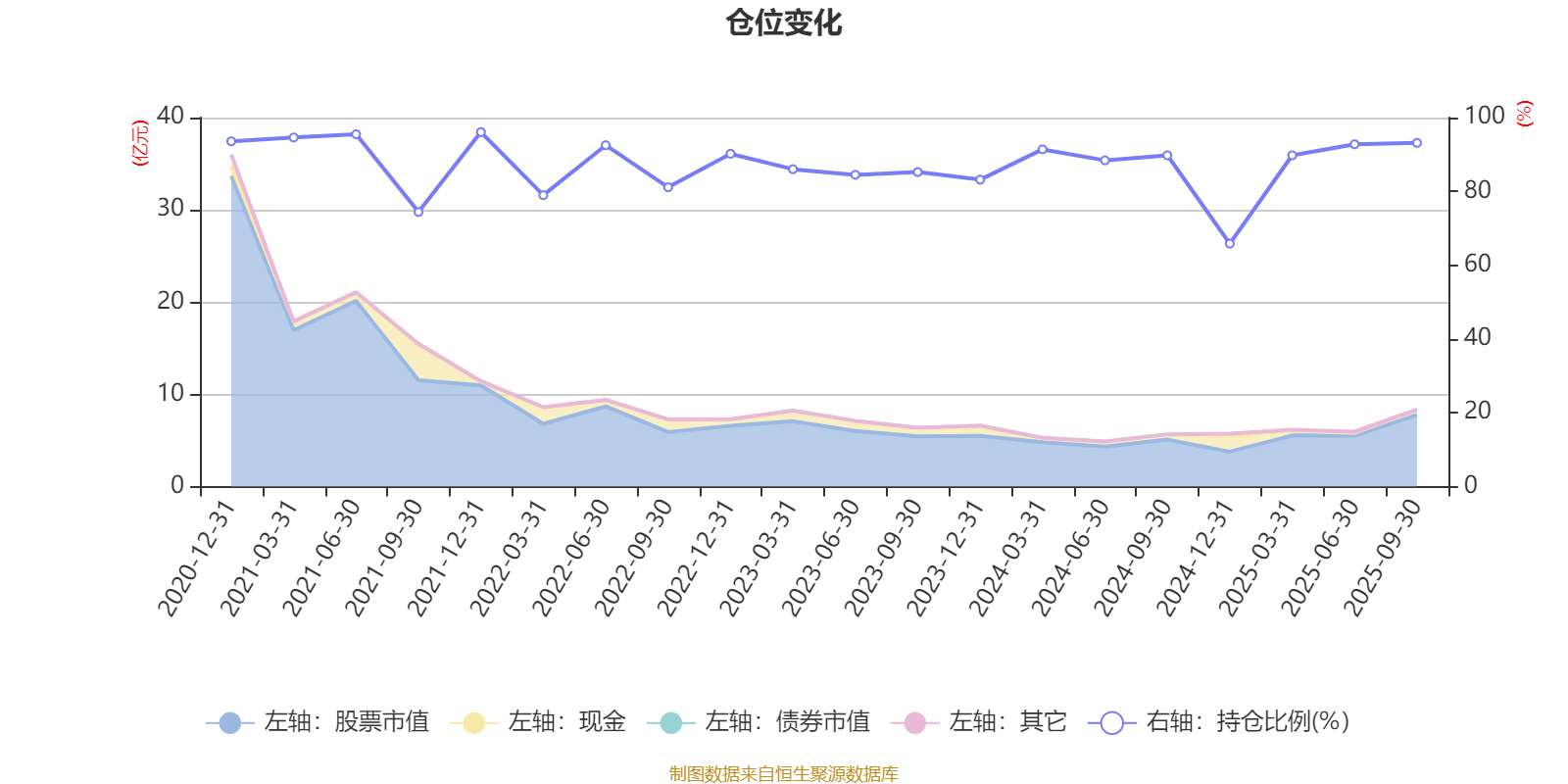 据定期报告数据统计,近三年平均股票仓位为86.69%,同类平均为86.77%。2021年末基金达到96.07%的最高仓位,2024年末最低,为65.85%。