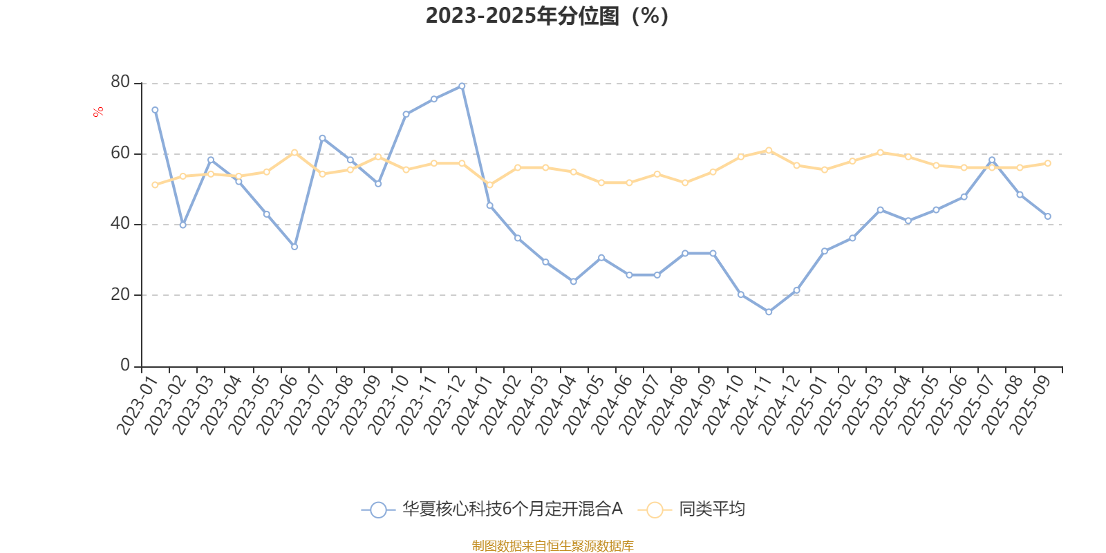 通过所选区间该基金净值增长率分位图,可以观察该基金与同类基金业绩比较情况。图为坐标原点到区间内某时点的净值增长率在同类基金中的分位数。