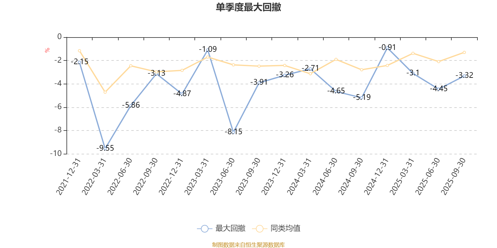 截至10月28日,基金近三年最大回撤为13.01%,同类可比基金排名470/535。单季度最大回撤出现在2022年一季度,为9.55%。