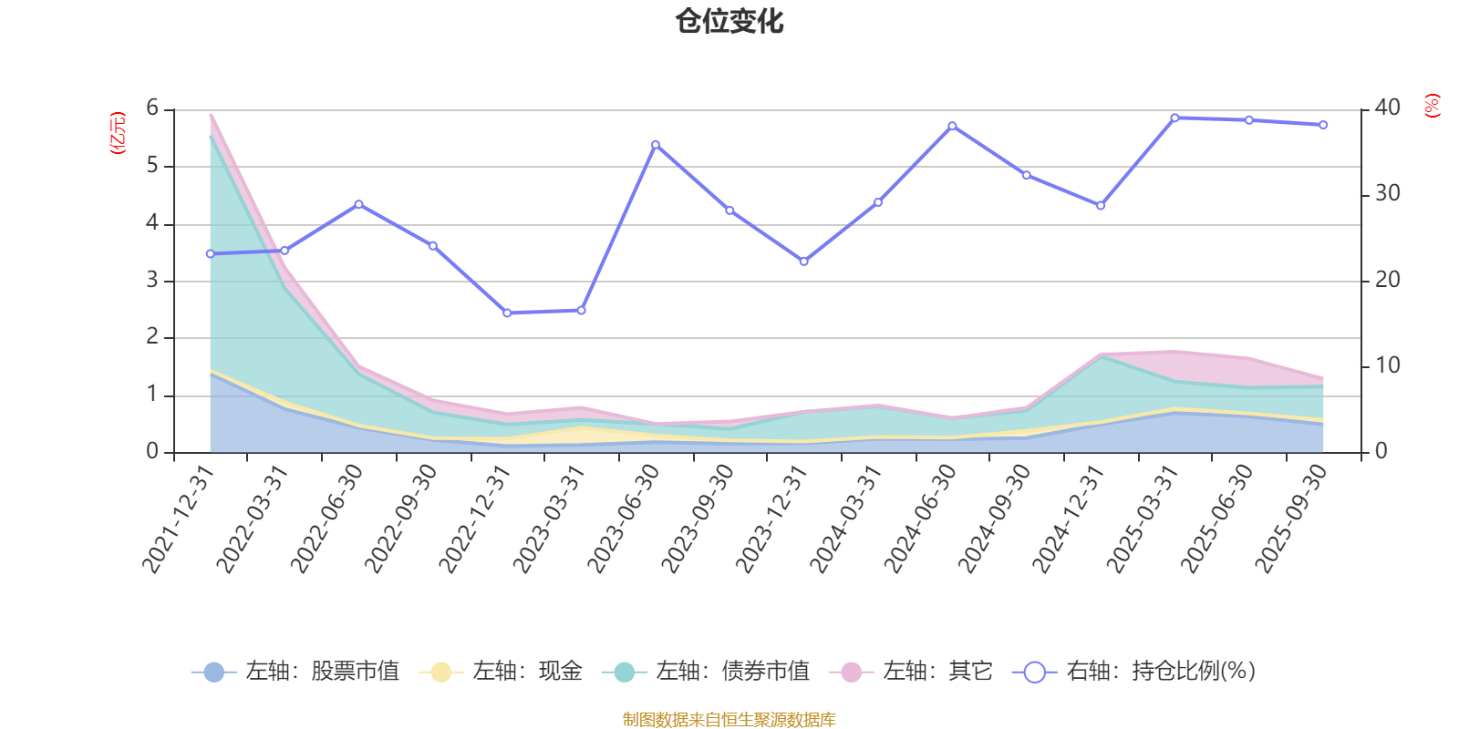 据定期报告数据统计,近三年平均股票仓位为30.29%,同类平均为19.14%。2025年一季度末基金达到39.01%的最高仓位,2022年末最低,为16.26%。
