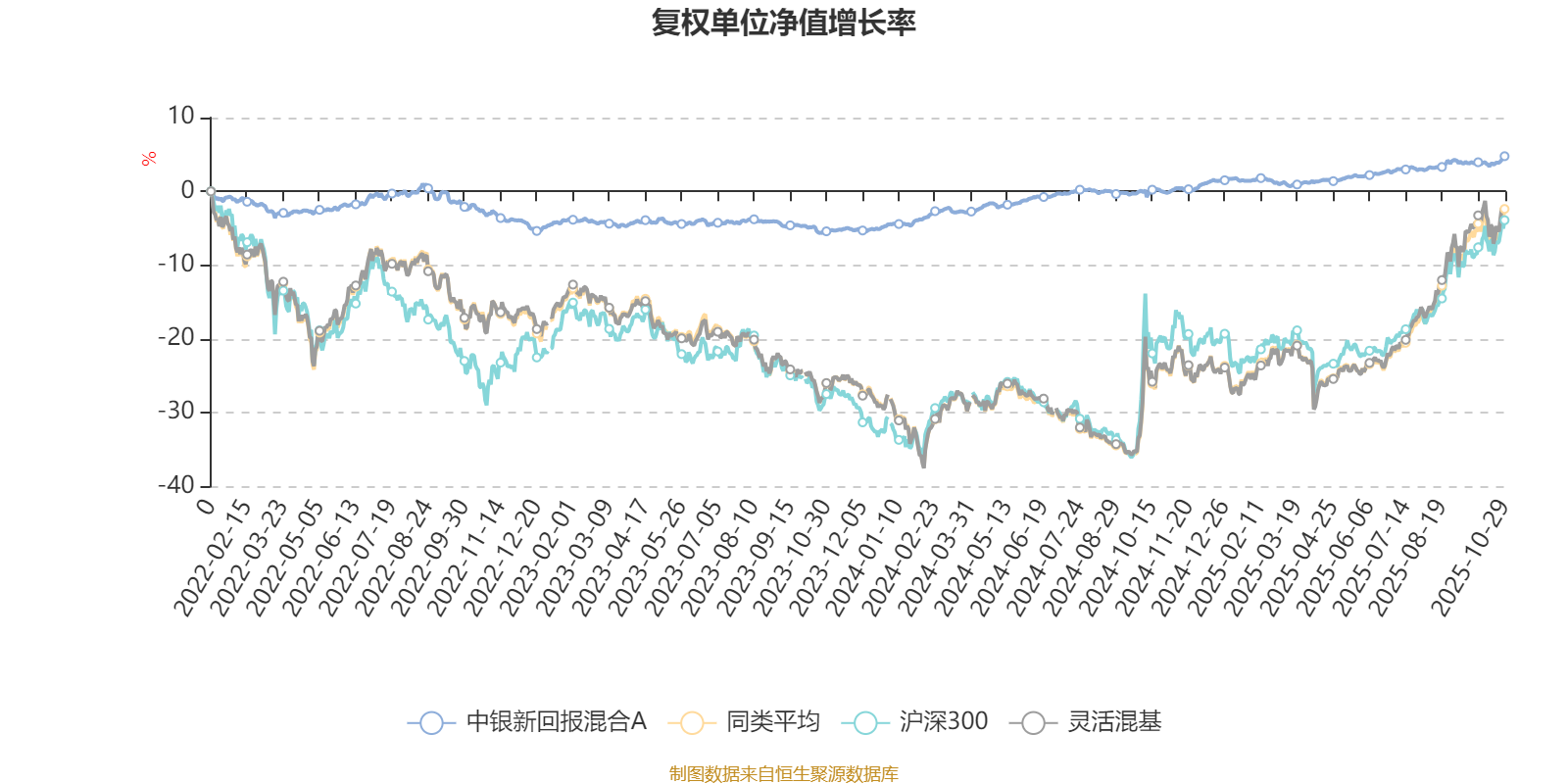 截至10月29日,中银新回报混合A近三个月复权单位净值增长率为1.75%,位于同类可比基金1121/1287;近半年复权单位净值增长率为3.21%,位于同类可比基金1210/1287;近一年复权单位净值增长率为4.95%,位于同类可比基金1157/1287;近三年复权单位净值增长率为8.04%,位于同类可比基金867/1286。