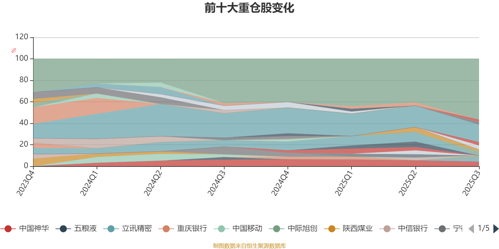 截至2025年三季度末,基金十大重仓股分别是长江电力、中国神华、恒瑞医药、建设银行、立讯精密、新诺威、新易盛、中际旭创、三生国健、兴业银行。