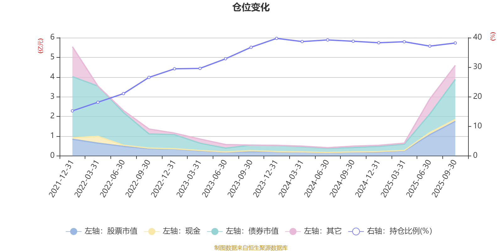 据定期报告数据统计,近三年平均股票仓位为36.44%,同类平均为19.14%。2023年末基金达到39.75%的最高仓位,2021年末最低,为15.21%。
