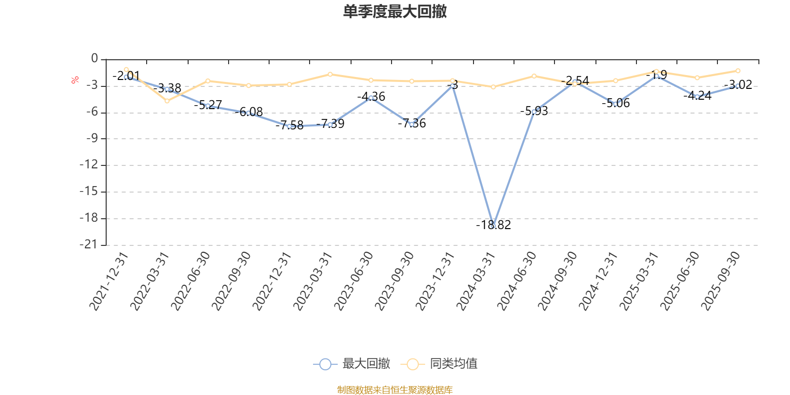 截至10月28日,基金近三年最大回撤为28.67%,同类可比基金排名530/535。单季度最大回撤出现在2024年一季度,为18.82%。