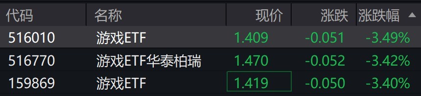 游戏概念股走低,巨人网络跌超8%,恺英网络、顺网科技跌超4%。