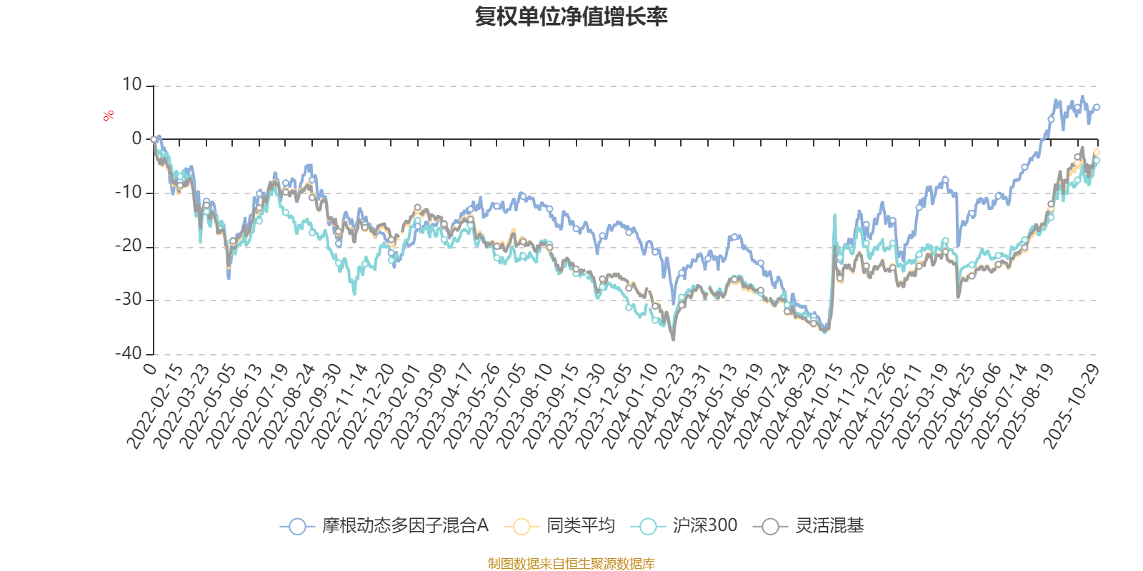 截至10月29日,摩根动态多因子混合A近三个月复权单位净值增长率为8.56%,位于同类可比基金793/1287;近半年复权单位净值增长率为23.78%,位于同类可比基金676/1287;近一年复权单位净值增长率为31.40%,位于同类可比基金462/1287;近三年复权单位净值增长率为30.33%,位于同类可比基金392/1286。