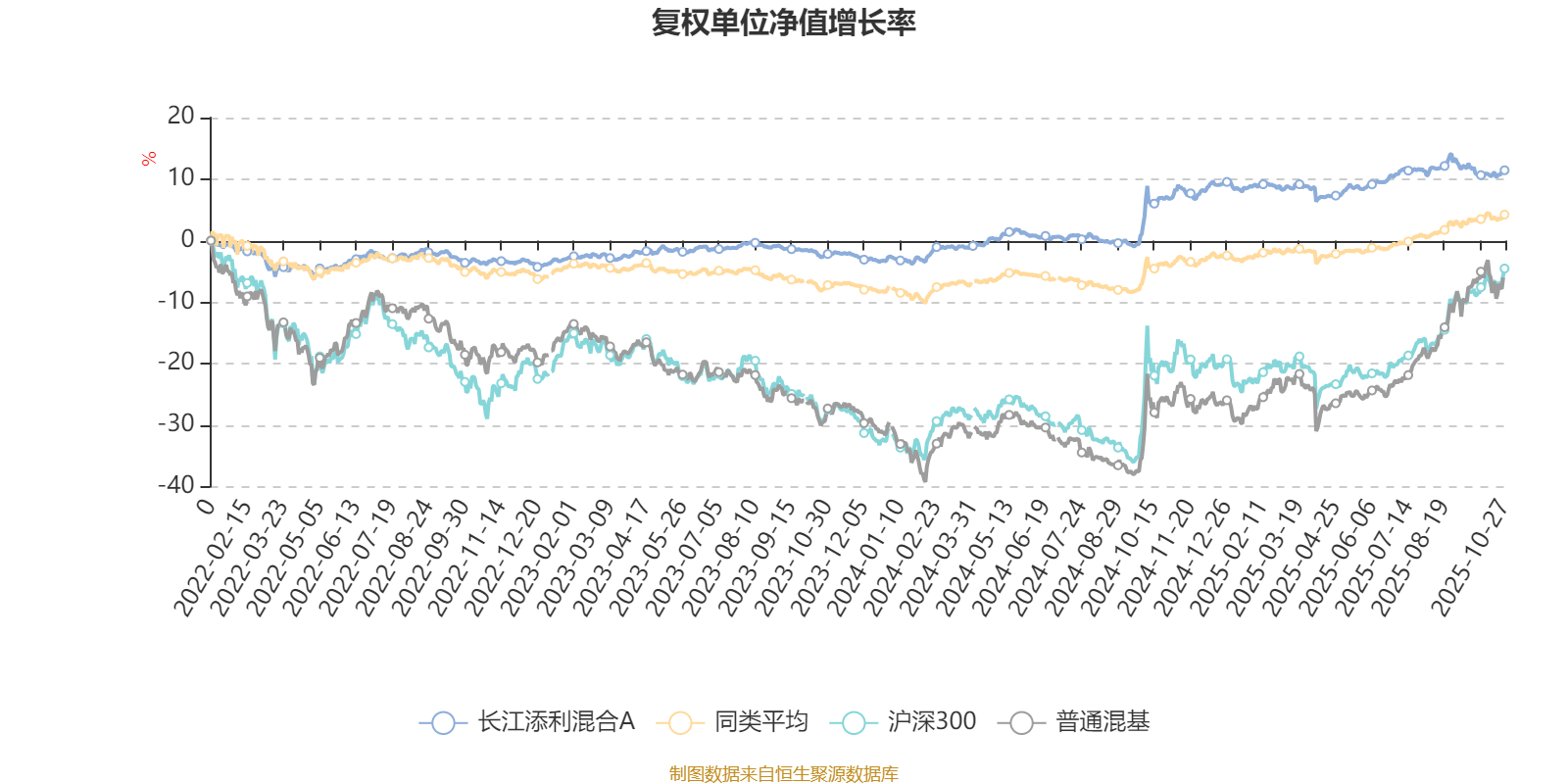 截至10月27日,长江添利混合A近三个月复权单位净值增长率为-0.01%,位于同类可比基金603/629;近半年复权单位净值增长率为3.84%,位于同类可比基金440/629;近一年复权单位净值增长率为4.16%,位于同类可比基金511/623;近三年复权单位净值增长率为15.49%,位于同类可比基金152/557。