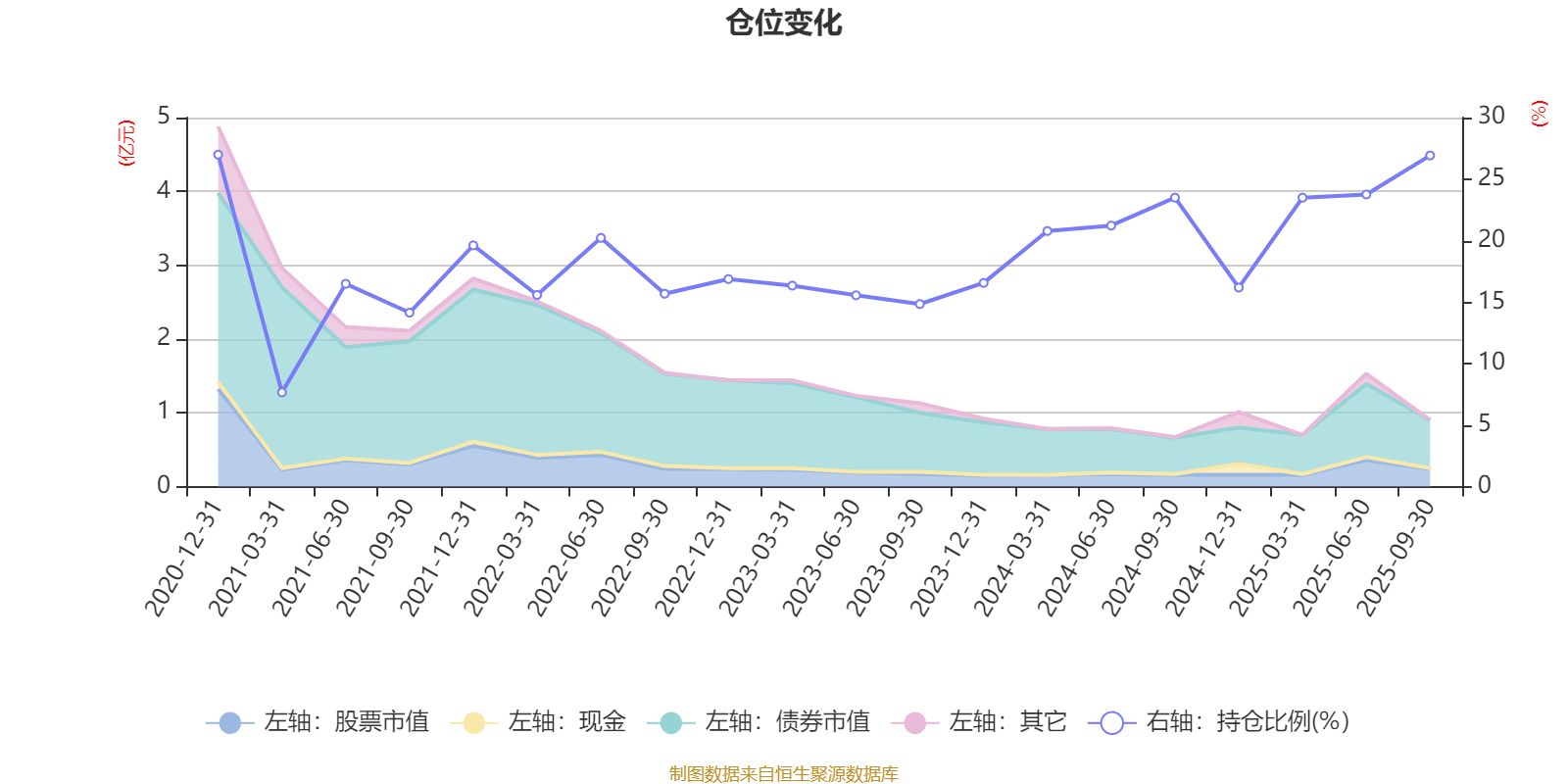 基金管理人在三季报中表示,报告期内,本基金保持了相对稳定的股债配比,在债券部分继续压缩久期、降低组合的利率风险敞口;在股票部分,红利品种表现相对落后,我们在评估估值水平的基础上适当增加弹性。