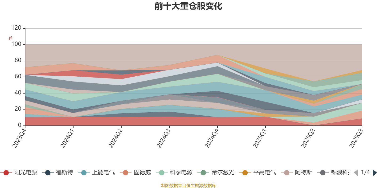 该基金持股集中度较高。截至2025年三季度末,基金十大重仓股分别是固德威、科泰电源、潍柴重机、阳光电源、艾罗能源、中恒电气、德业股份、禾望电气、科华数据、洪田股份。