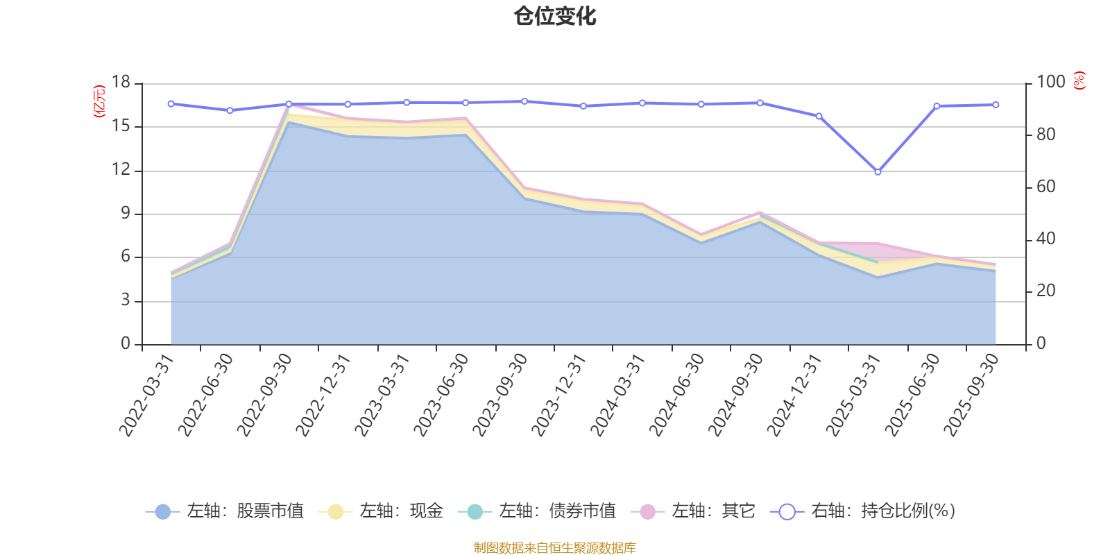 据定期报告数据统计,近三年平均股票仓位为89.57%,同类平均为87.09%。2023年三季度末基金达到93.12%的最高仓位,2025年一季度末最低,为66.03%。