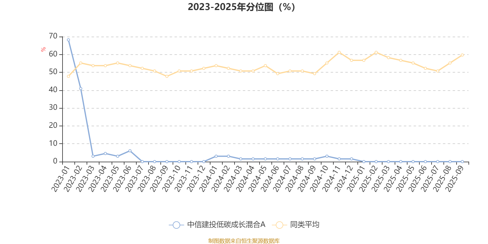 通过所选区间该基金净值增长率分位图,可以观察该基金与同类基金业绩比较情况。图为坐标原点到区间内某时点的净值增长率在同类基金中的分位数。