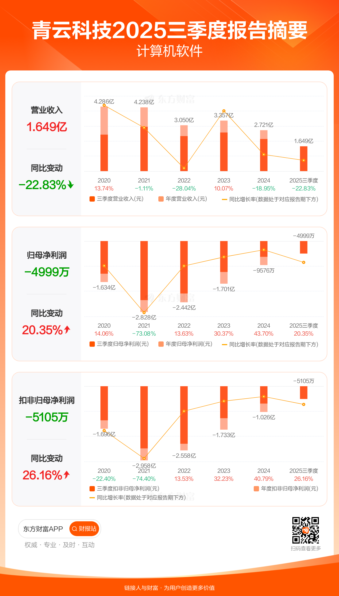 图解财报:青云科技前三季归母净利润-4998.82万元,上年同期-6275.86万元