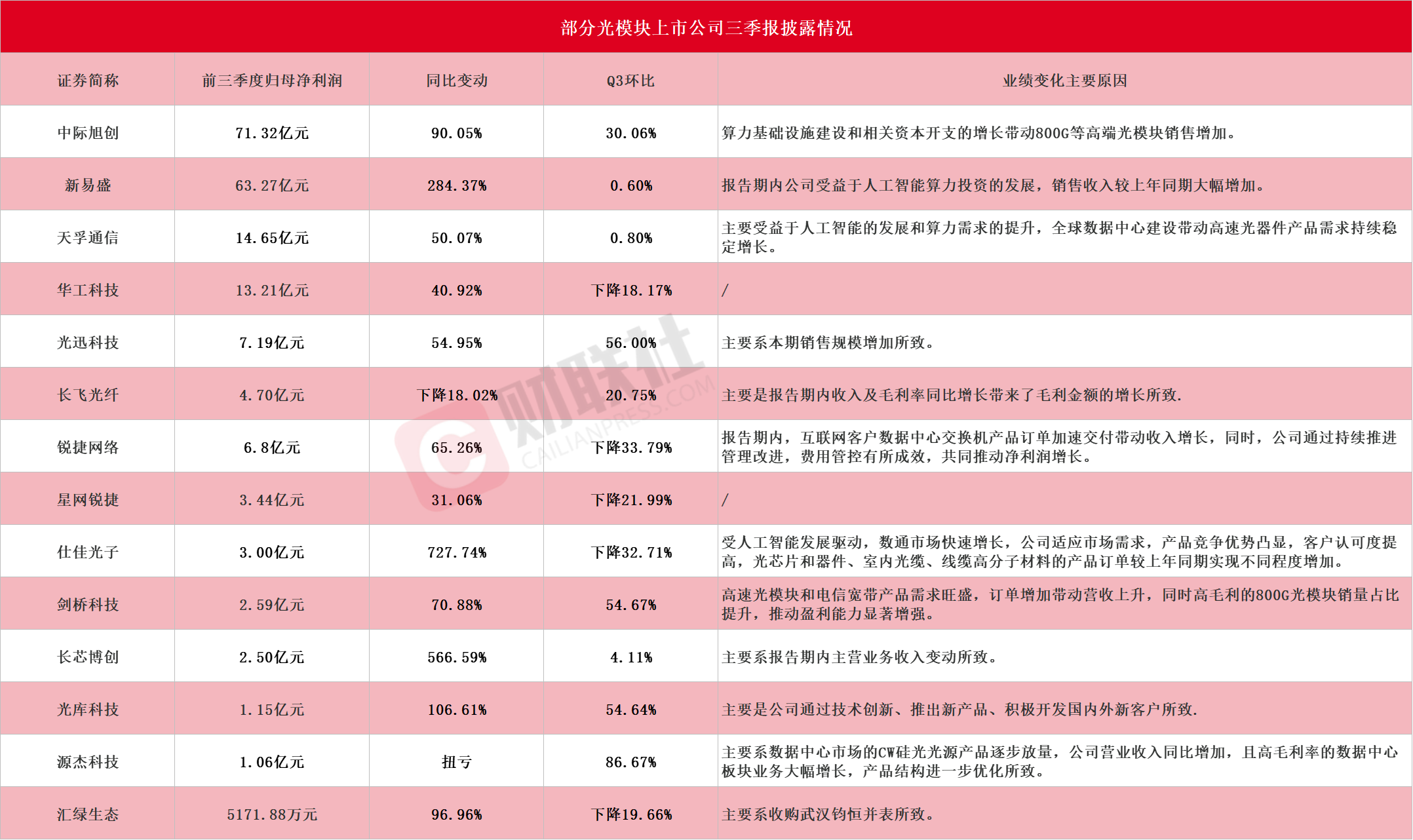 光模块三剑客三季报出炉 中际旭创Q3净利润环比增长30%