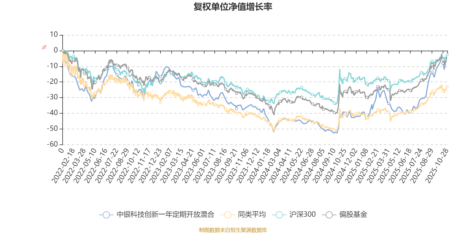 截至10月24日,中银科技创新一年定期开放混合近三个月复权单位净值增长率为38.18%,位于同类可比基金38/621;近半年复权单位净值增长率为54.59%,位于同类可比基金64/619;近一年复权单位净值增长率为55.45%,位于同类可比基金73/611;近三年复权单位净值增长率为27.15%,位于同类可比基金194/518。