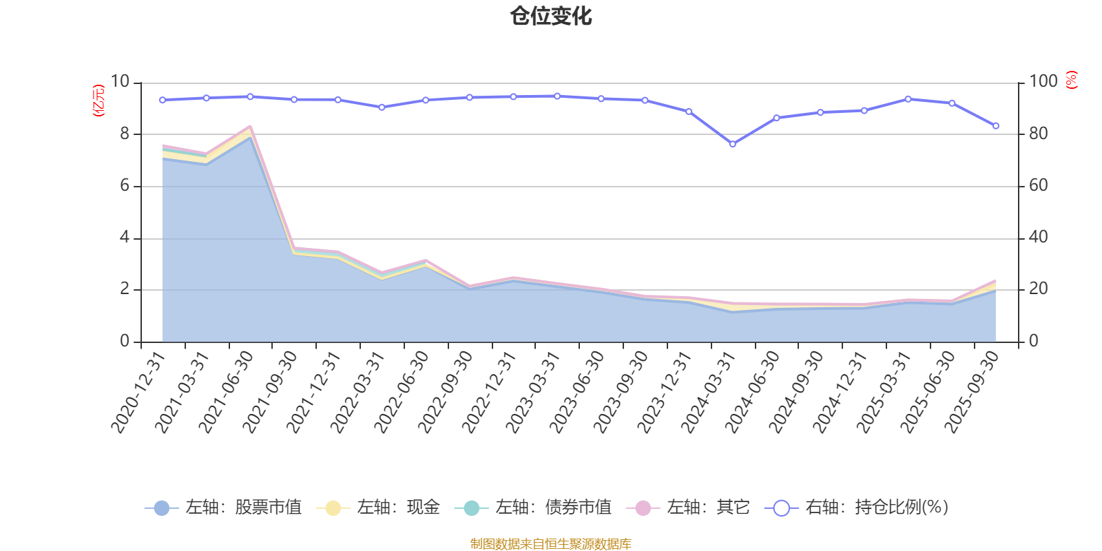 据定期报告数据统计,近三年平均股票仓位为89.57%,同类平均为85.66%。2023年一季度末基金达到94.8%的最高仓位,2024年一季度末最低,为76.32%。