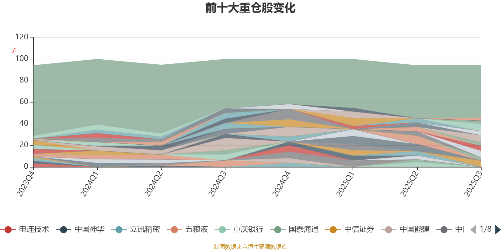 截至2025年三季度末,基金十大重仓股分别是中芯国际、阿里巴巴-W、寒武纪、腾讯控股、新华保险、能科科技、中科飞测、兆易创新、金诚信、浪潮信息。