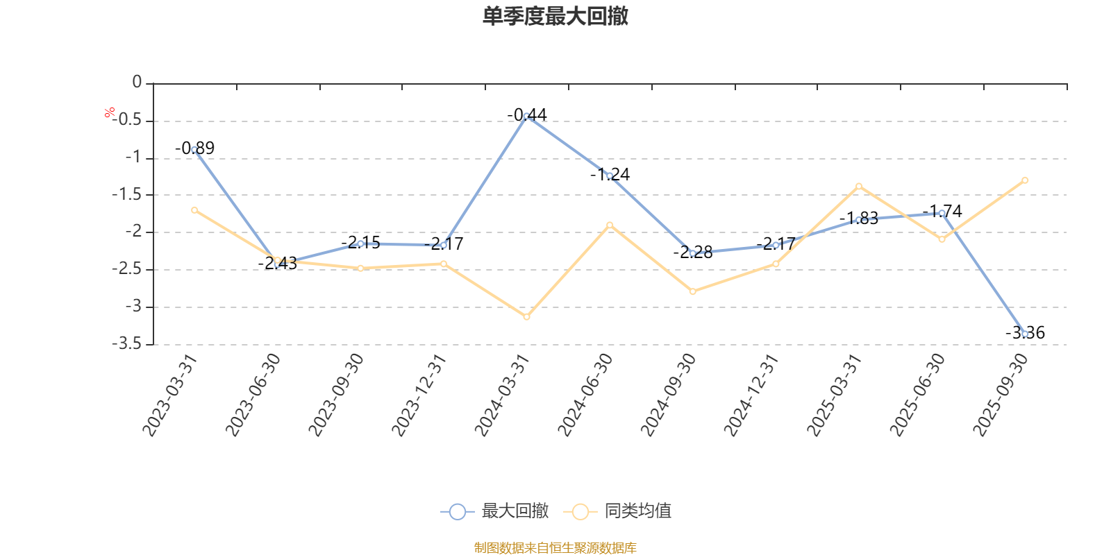 截至10月29日,基金成立以来最大回撤为4.95%。单季度最大回撤出现在2025年三季度,为3.36%。