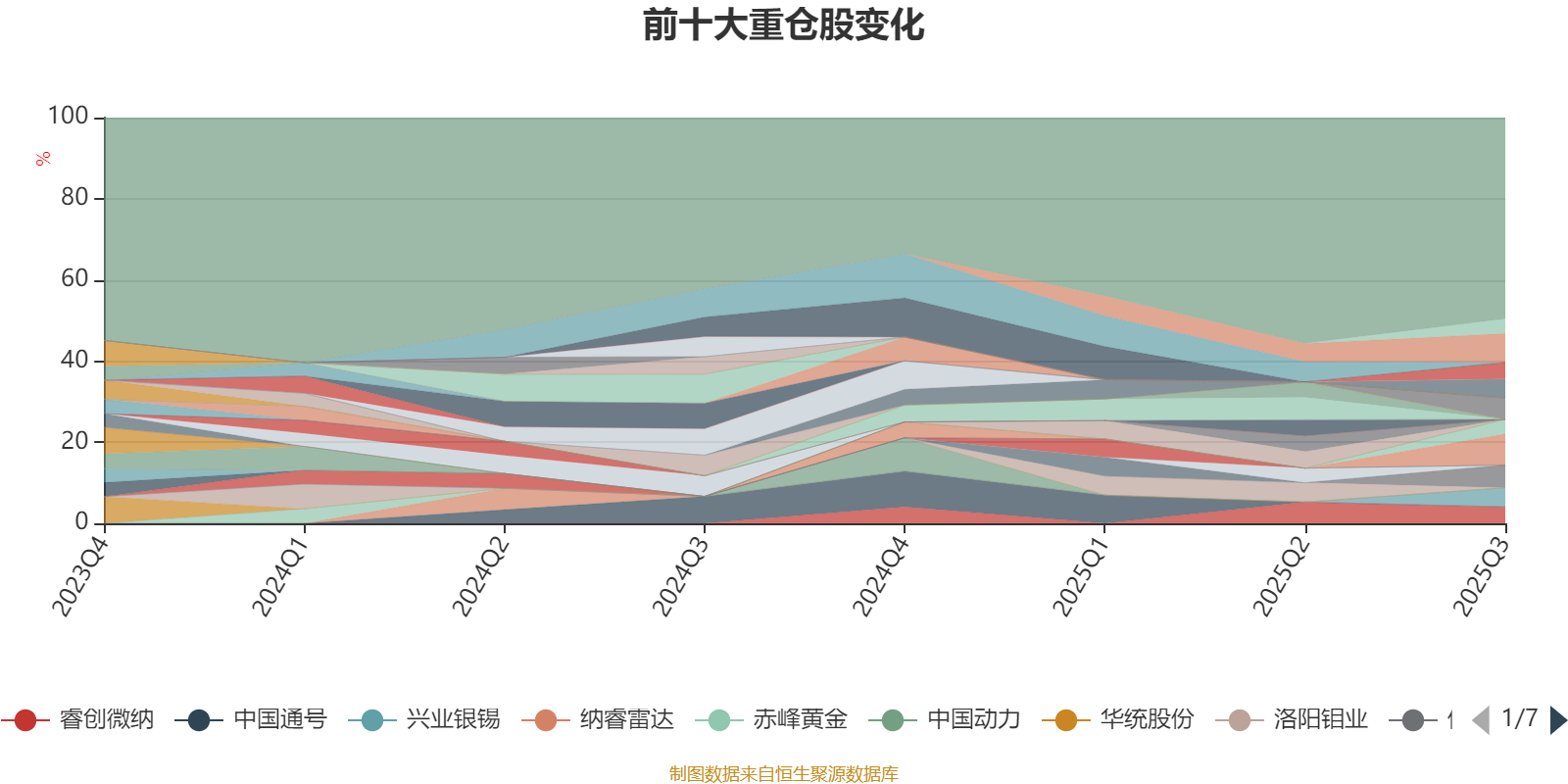 截至2025年三季度末,基金十大重仓股分别是中航沈飞、松原安全、伊之密、迈威生物、华友钴业、兴业银锡、国博电子、睿创微纳、光启技术、盐湖股份。