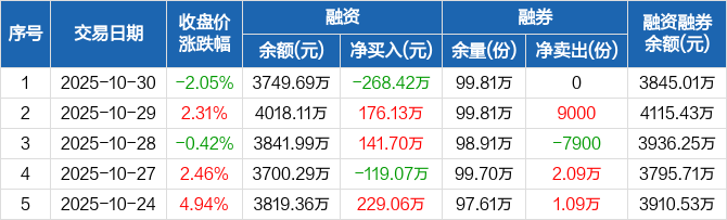 科创创业50ETF:融资净偿还268.42万元,融资余额3749.69万元(10-30)