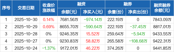 旅游ETF:融资净偿还974.14万元,融资余额7681.56万元(10-30)