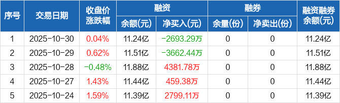 纳指科技ETF:融资净偿还2693.29万元,融资余额11.24亿元(10-30)