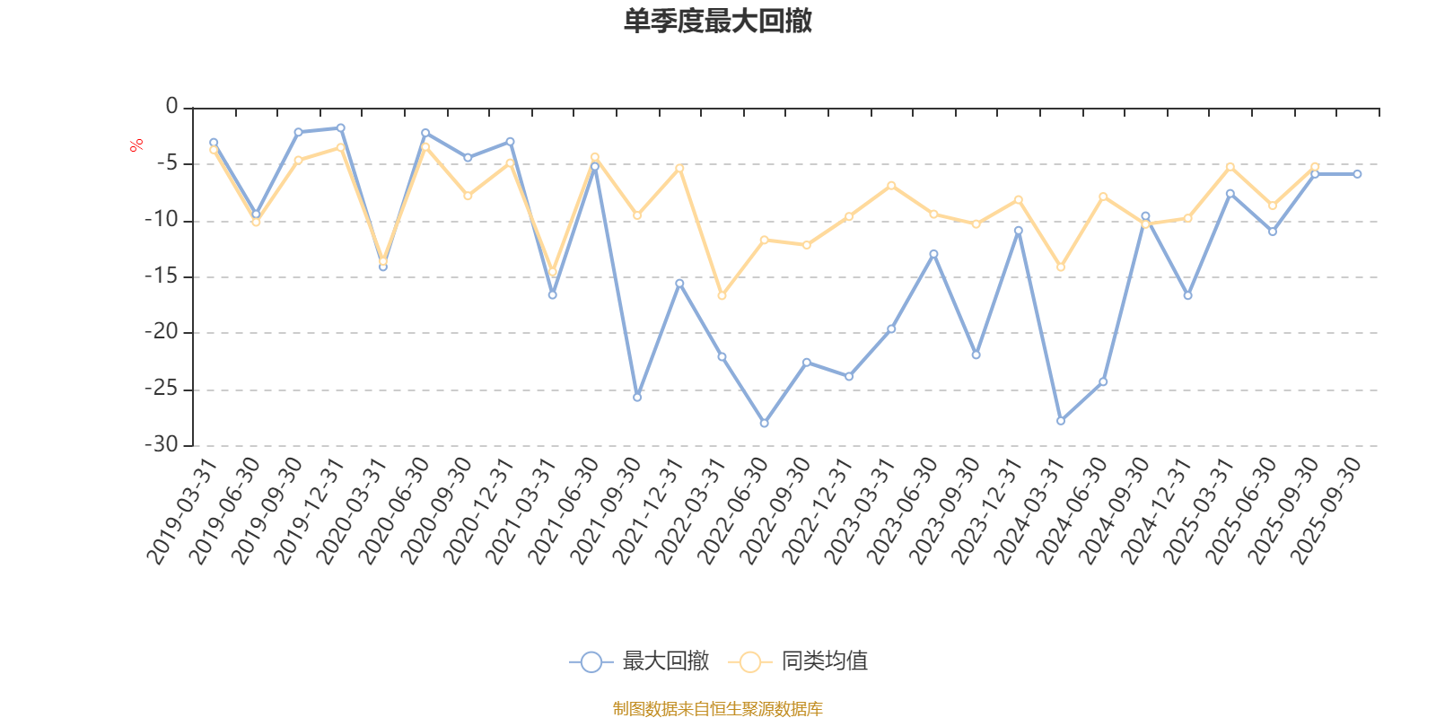 通过所选区间该基金净值增长率分位图,可以观察该基金与同类基金业绩比较情况。图为坐标原点到区间内某时点的净值增长率在同类基金中的分位数。