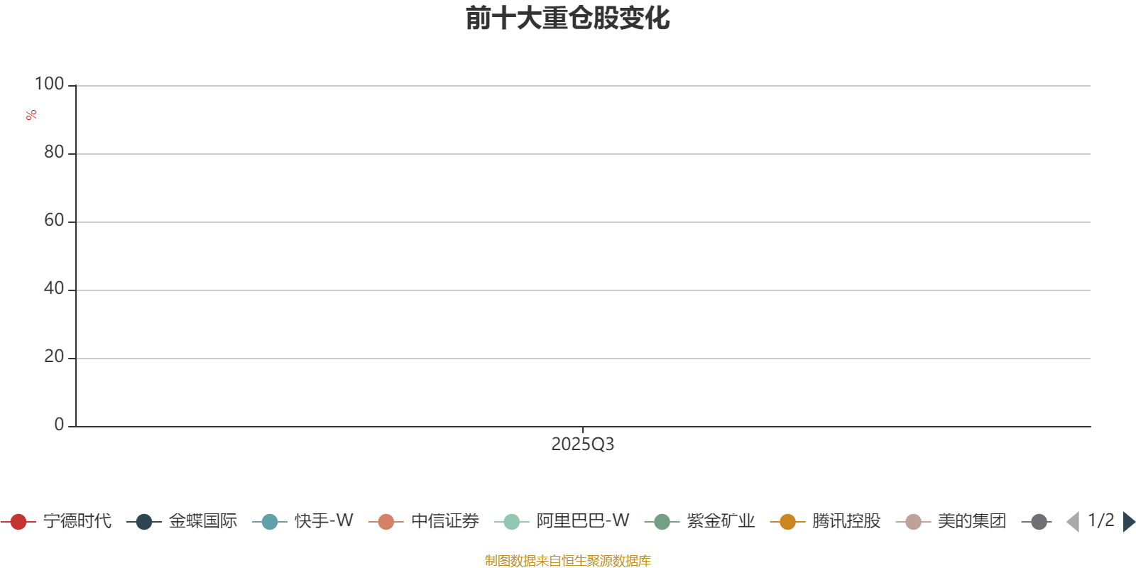 截至2025年三季度末,基金十大重仓股分别是宁德时代、腾讯控股、阿里巴巴-W、紫金矿业、贵州茅台、中国平安、快手-W、金蝶国际、美的集团、中信证券。