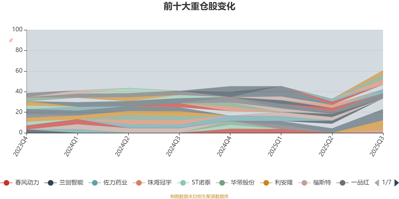 截至2025年三季度末,基金十大重仓股分别是振华股份、杰瑞股份、利安隆、壹网壹创、中国巨石、法兰泰克、天康生物、派能科技、永创智能、珠海冠宇。