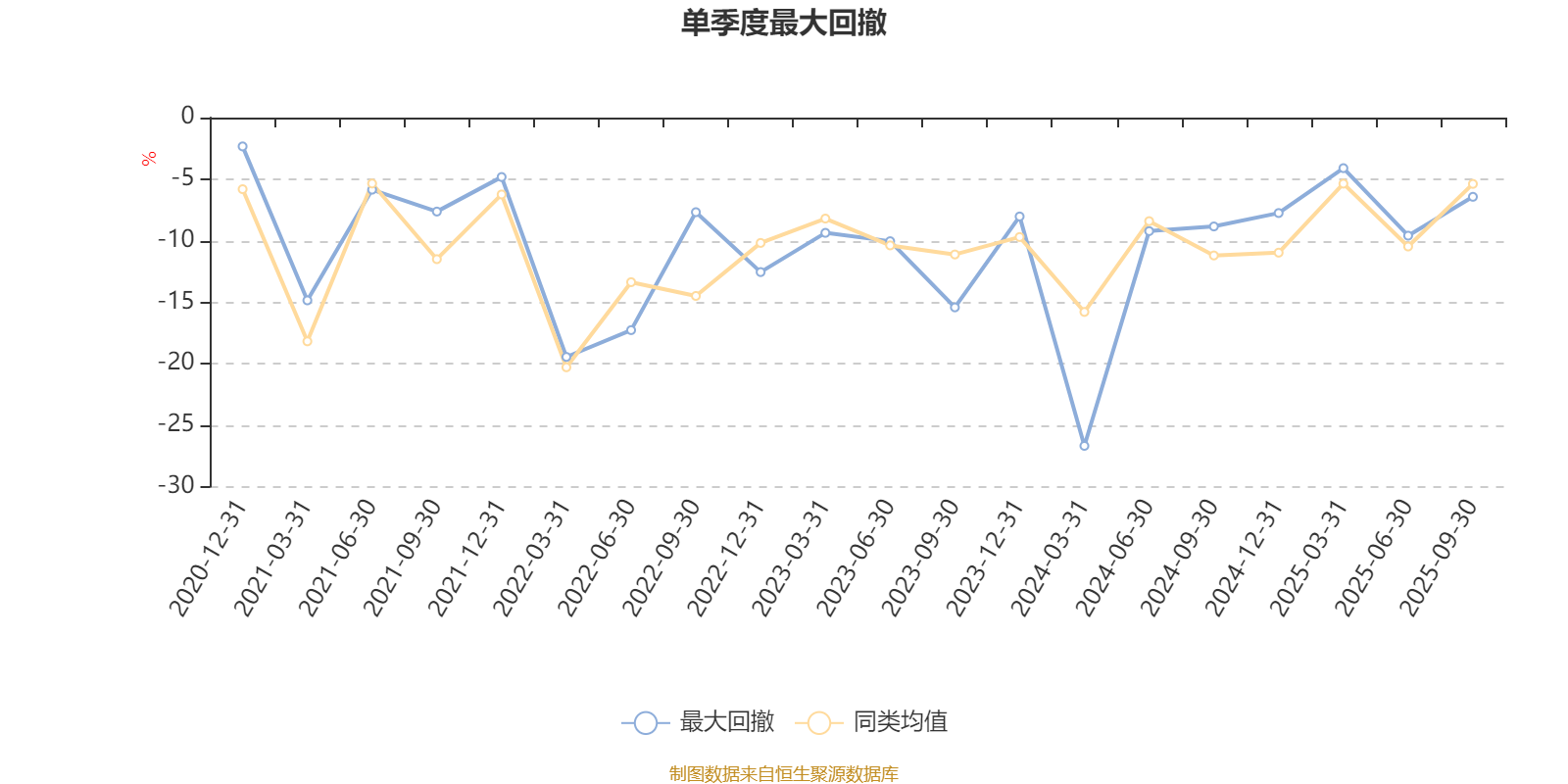 截至10月27日,基金近三年最大回撤为42.99%,同类可比基金排名206/251。单季度最大回撤出现在2024年一季度,为26.69%。