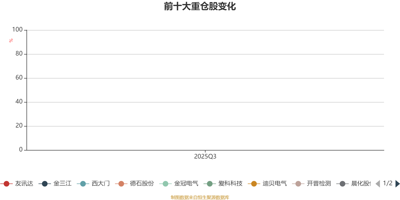 截至2025年三季度末,基金十大重仓股分别是西大门、迪贝电气、爱科科技、友讯达、西力科技、金冠电气、开普检测、晨化股份、金三江、德石股份。