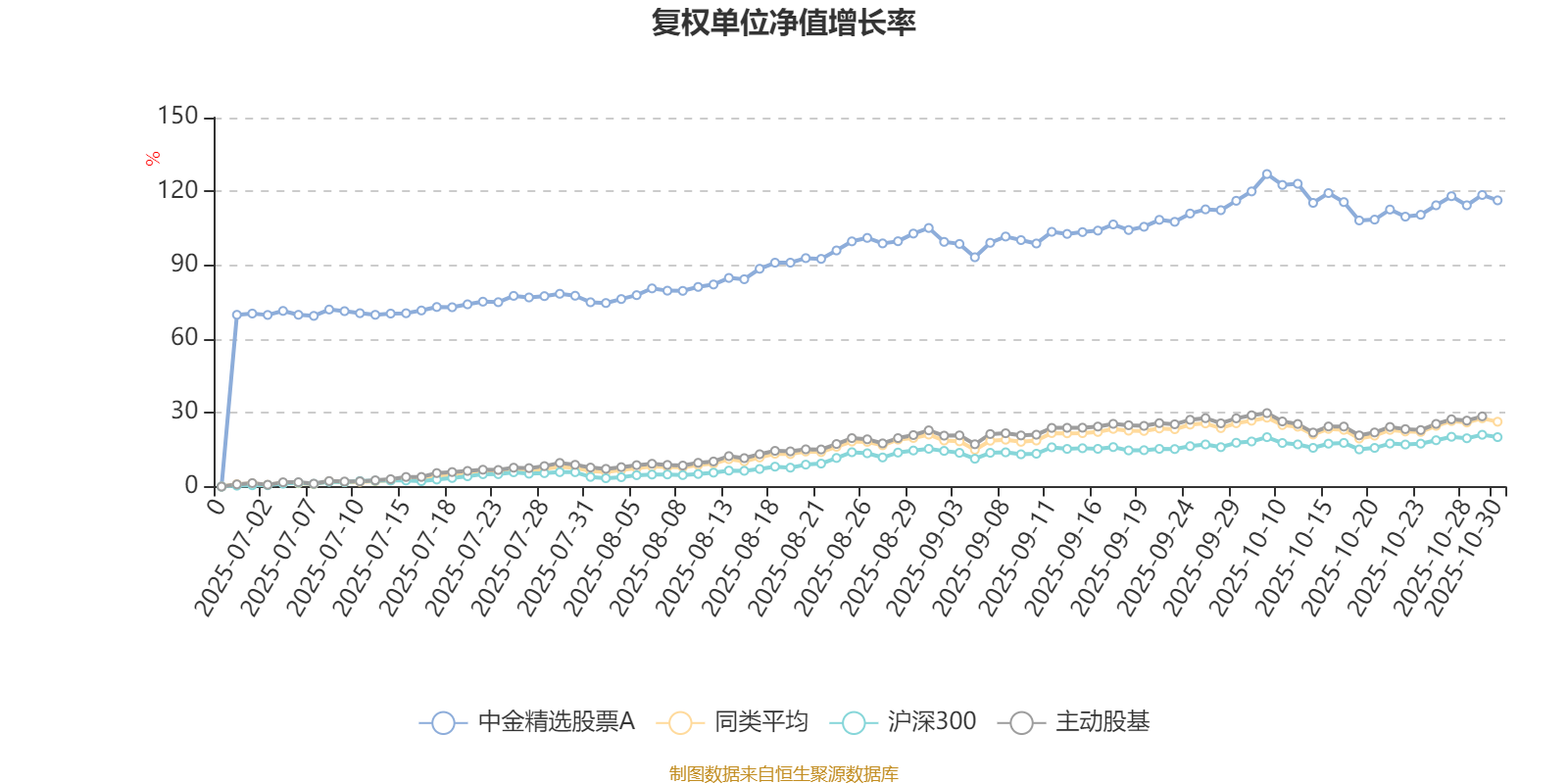 截至10月30日,中金精选股票A近三个月复权单位净值增长率为21.84%,位于同类可比基金52/167。