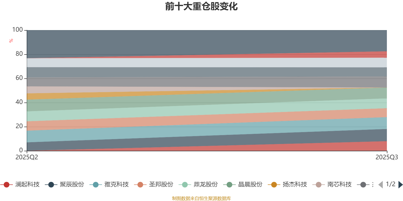 该基金持股集中度较高。截至2025年三季度末,基金十大重仓股分别是聚辰股份、雅克科技、兆易创新、晶晨股份、鼎龙股份、晶丰明源、澜起科技、安集科技、圣邦股份、阿里巴巴-W。