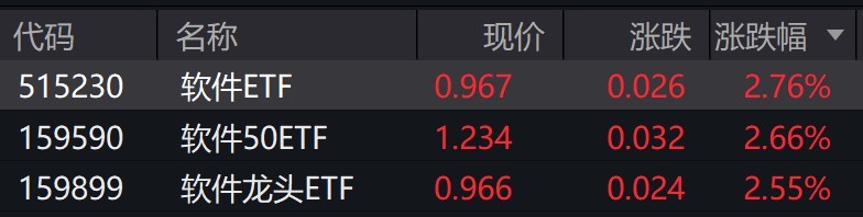 受重仓股上涨影响,软件相关ETF涨超2%。