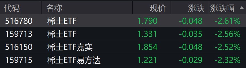 稀土概念股早盘走低,中国稀土跌超4%,北方稀土、盛和资源、金风科技跌超3%。