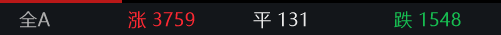 沪深两市成交额2.32万亿,较上一个交易日缩量1039亿。全市场近3800股上涨。