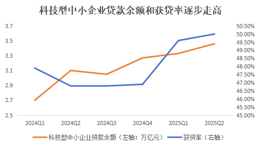 银行信贷是我国科技金融服务体系中的中流砥柱。根据人民银行数据,科技型中小企业贷款规模和获贷率都在上升趋势。2025年5月22日,金融监管总局新闻发言人、政策研究司司长郭武平指出,大中型银行已经在总行和省分行层面都设立了专门的科技金融部门,全国设立科技支行2178家。