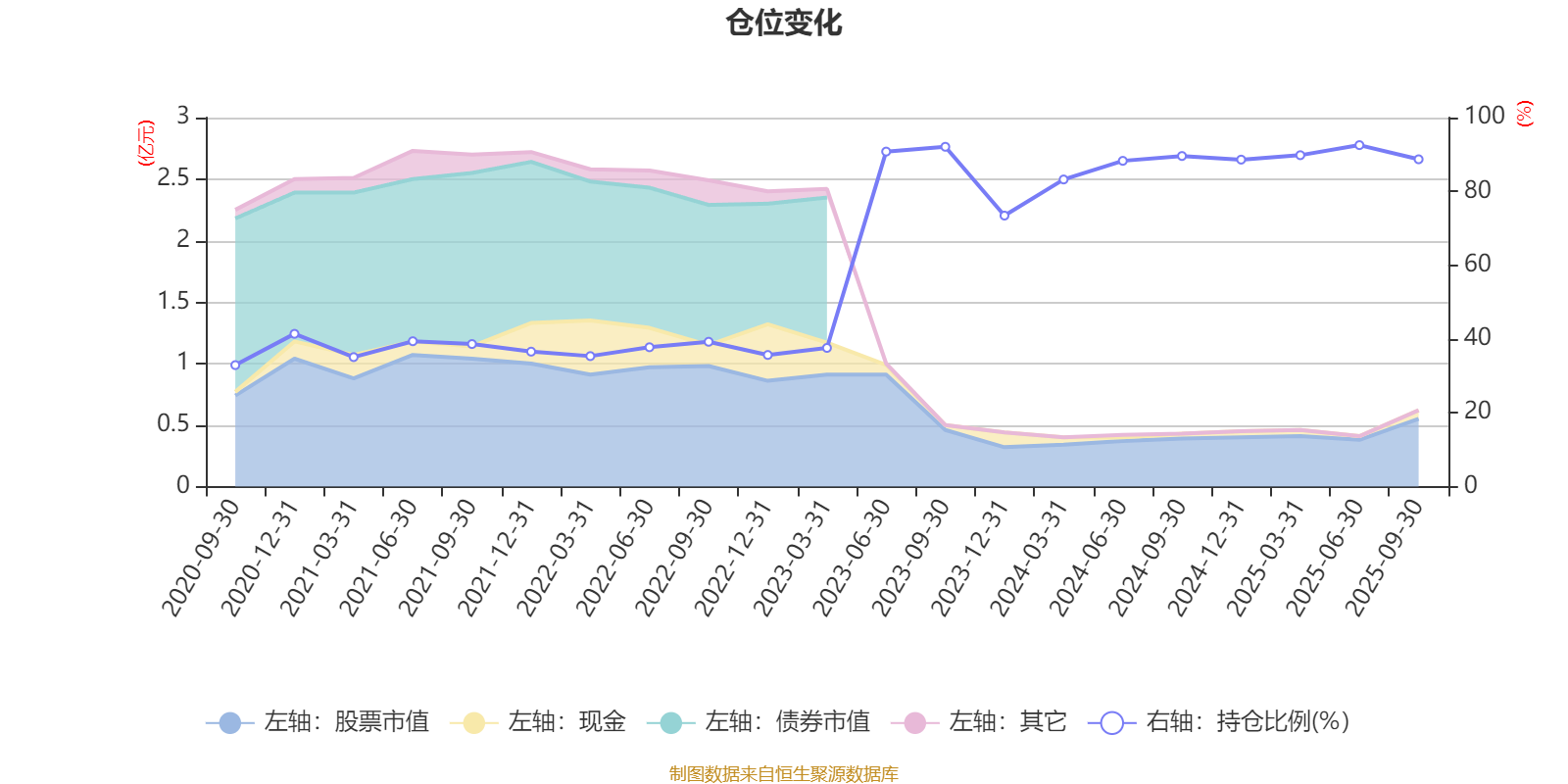 据定期报告数据统计,近三年平均股票仓位为79.19%,同类平均为86.77%。2025年上半年末基金达到92.54%的最高仓位,2020年三季度末最低,为32.92%。