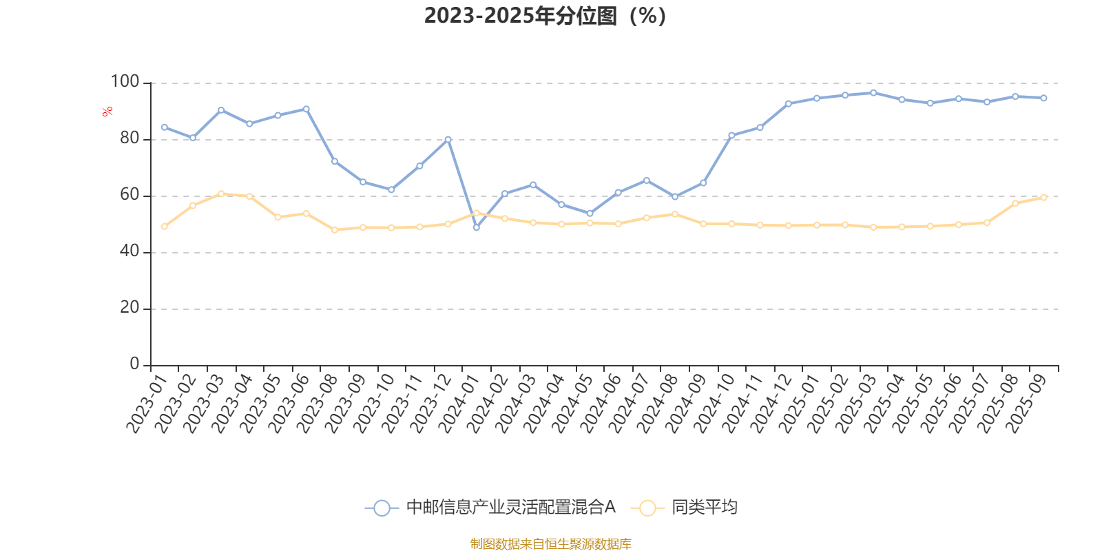 通过所选区间该基金净值增长率分位图,可以观察该基金与同类基金业绩比较情况。图为坐标原点到区间内某时点的净值增长率在同类基金中的分位数。