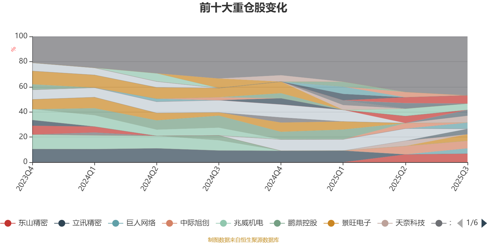 该基金持股集中度较高。截至2025年三季度末,基金十大重仓股分别是东山精密、新易盛、中际旭创、恺英网络、景旺电子、胜宏科技、厦钨新能、源杰科技、芯原股份、巨人网络。