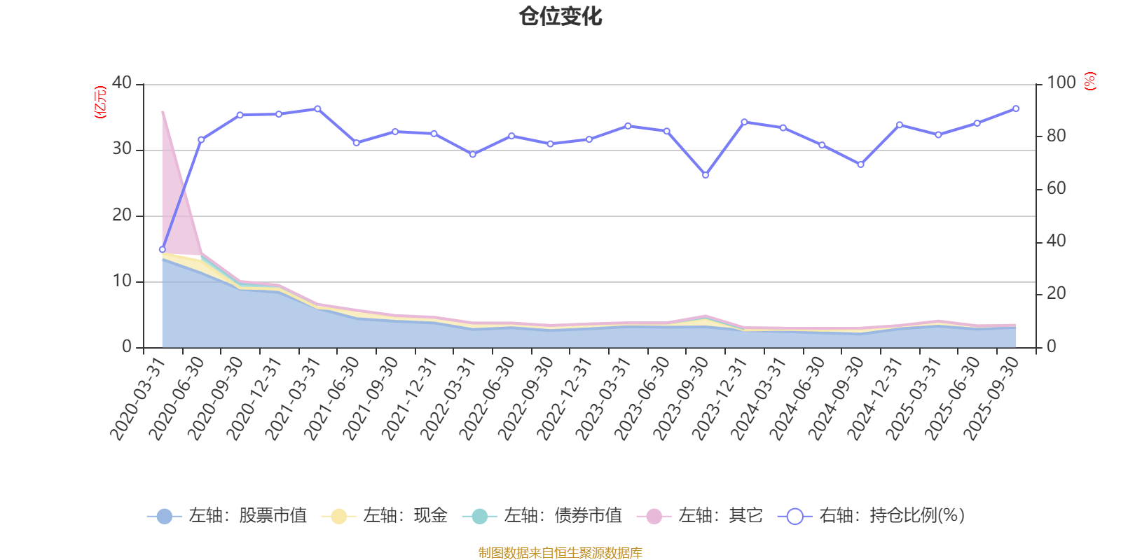 据定期报告数据统计,近三年平均股票仓位为80.59%,同类平均为85.66%。2025年三季度末基金达到90.67%的最高仓位,2020年一季度末最低,为37.22%。