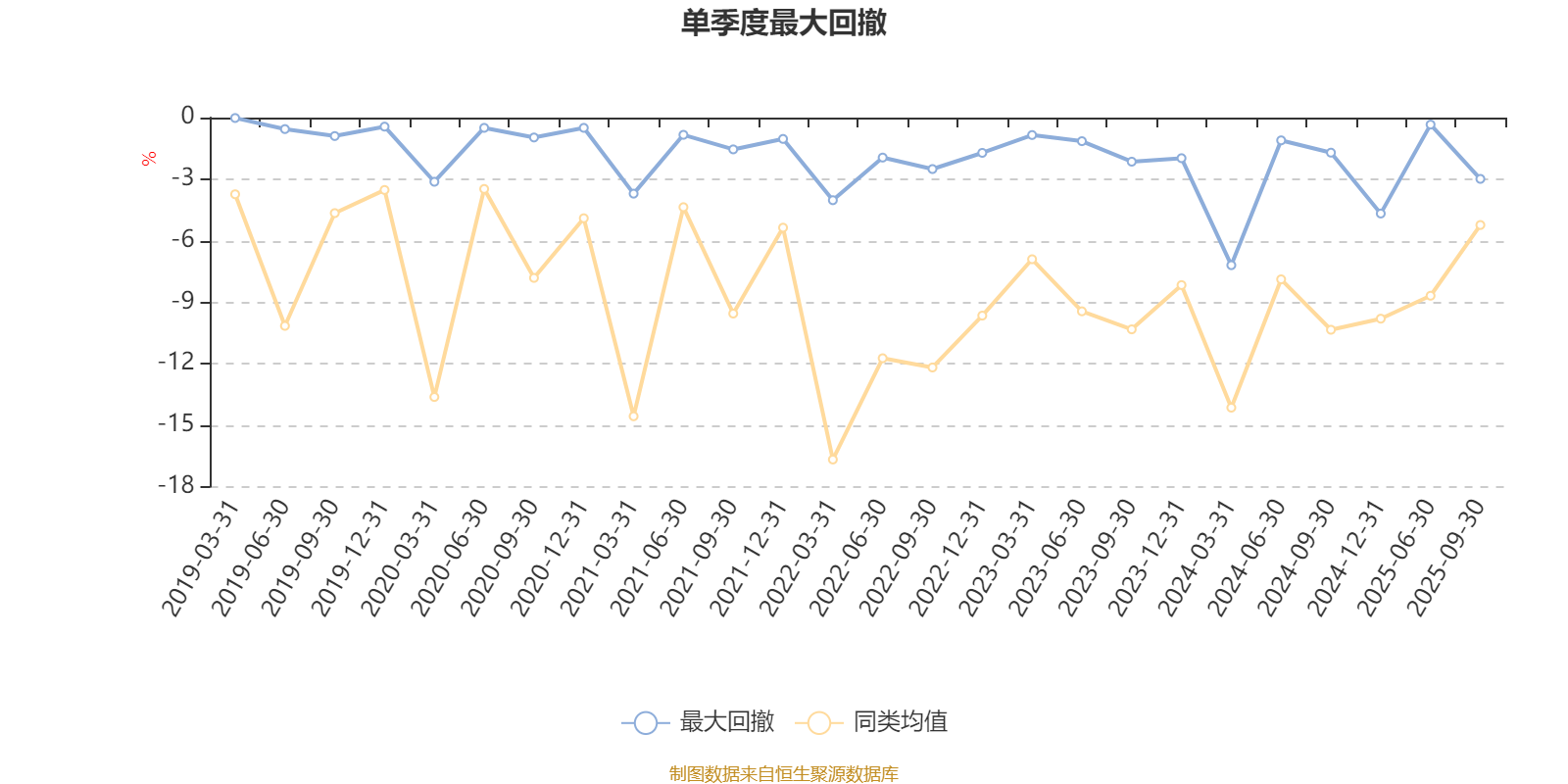 通过所选区间该基金净值增长率分位图,可以观察该基金与同类基金业绩比较情况。图为坐标原点到区间内某时点的净值增长率在同类基金中的分位数。