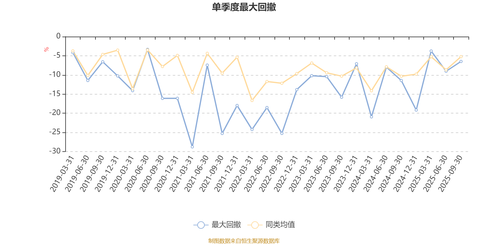 截至10月29日,基金近三年最大回撤为34.3%,同类可比基金排名687/1274。单季度最大回撤出现在2021年一季度,为28.81%。