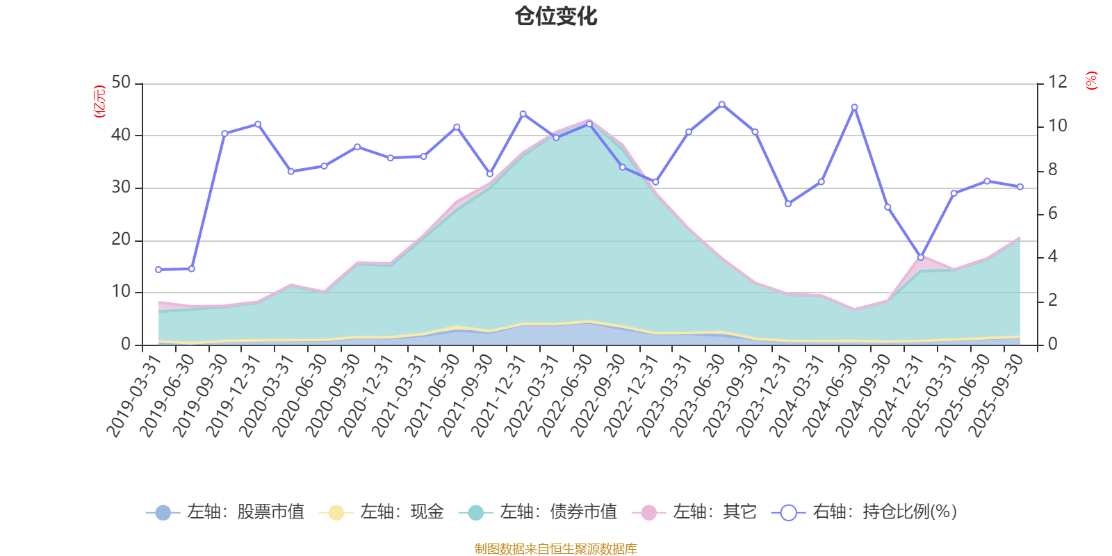 据定期报告数据统计,近三年平均股票仓位为7.92%,同类平均为72.35%。2023年上半年末基金达到11.04%的最高仓位,2019年一季度末最低,为3.46%。