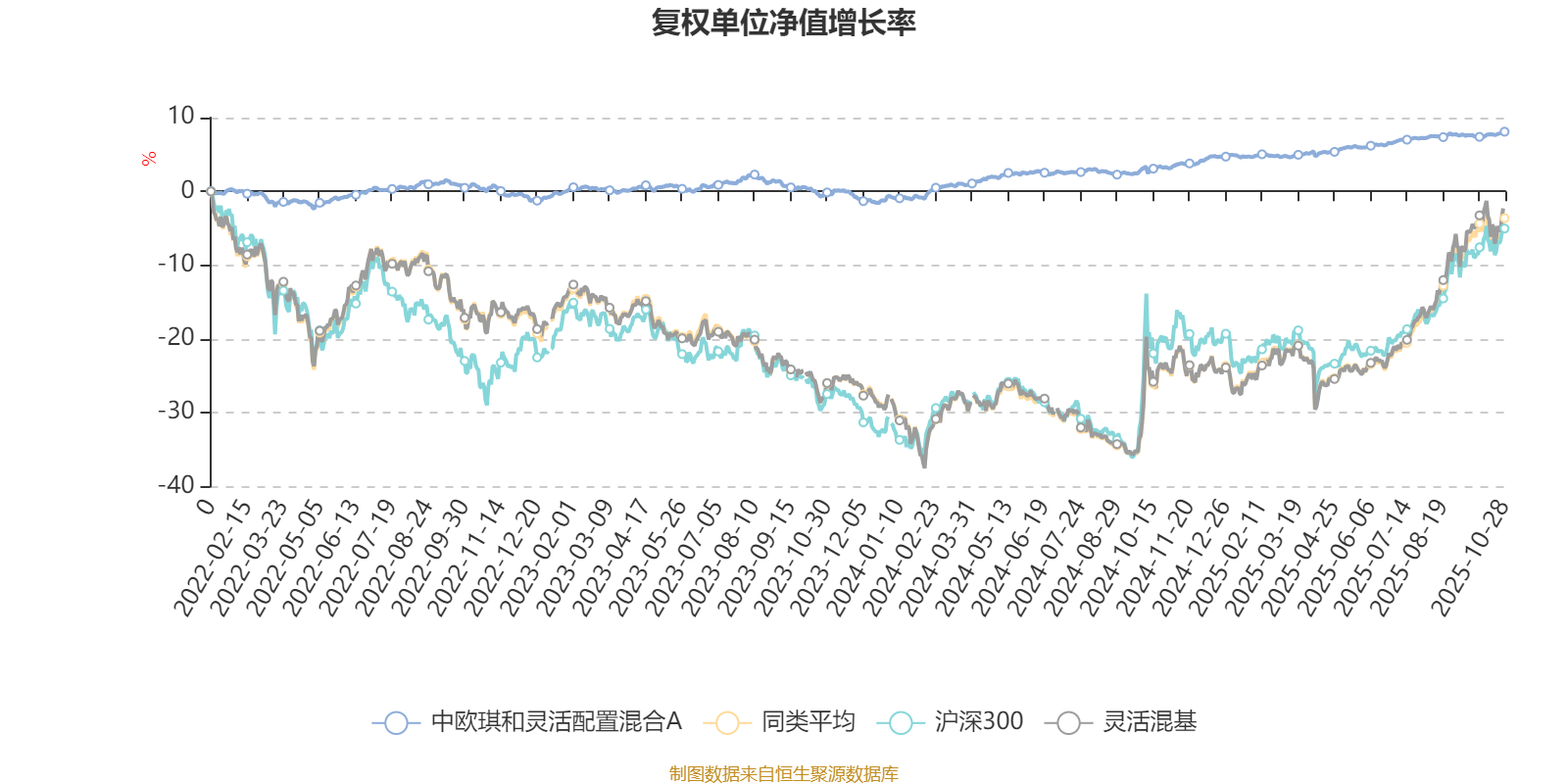 截至10月28日,中欧琪和灵活配置混合A近三个月复权单位净值增长率为0.76%,位于同类可比基金1172/1287;近半年复权单位净值增长率为2.56%,位于同类可比基金1235/1287;近一年复权单位净值增长率为4.63%,位于同类可比基金1132/1287;近三年复权单位净值增长率为8.04%,位于同类可比基金844/1286。