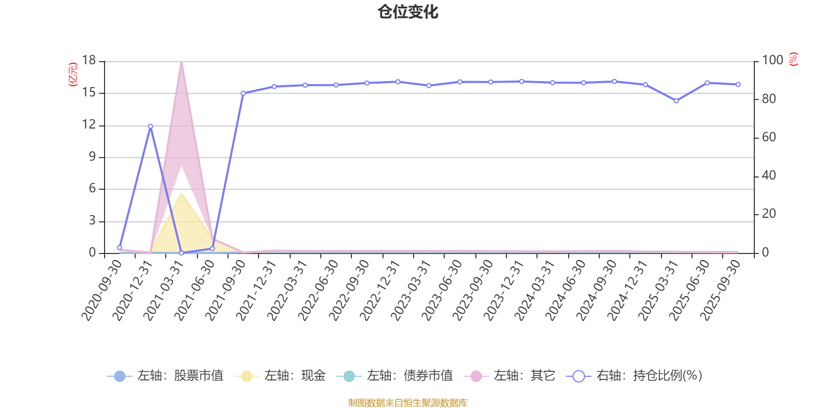 据定期报告数据统计,近三年平均股票仓位为87.95%,同类平均为72.35%。2024年三季度末基金达到89.46%的最高仓位,2021年一季度末最低,为0.14%。